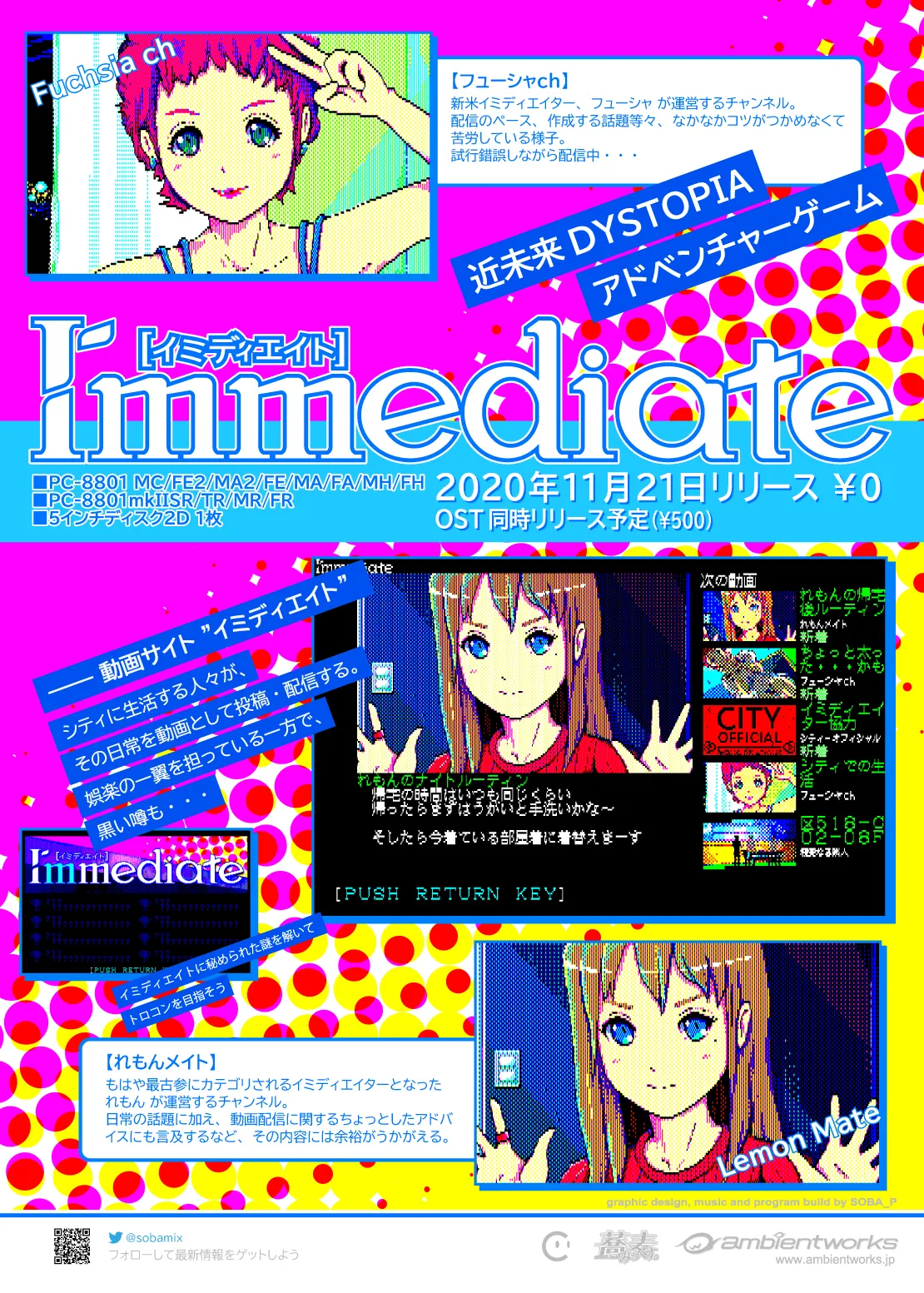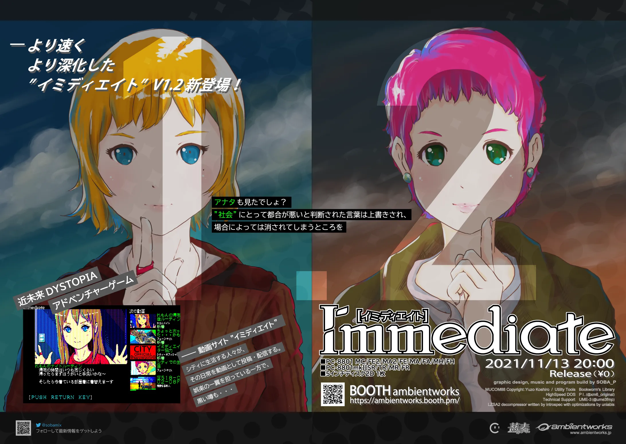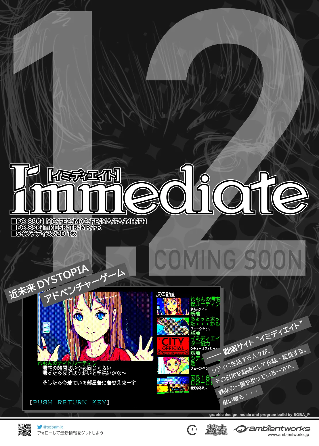 Immediate(イミディエイト)は、80年代後半に隆盛を誇った8bitコンピュータ「PC-8801mkIISRシリーズ」で動作する選択型AVG(アドベンチャーゲーム)です。